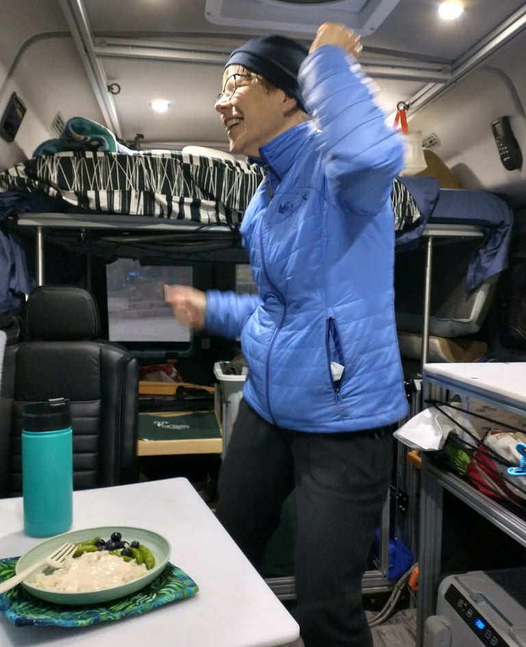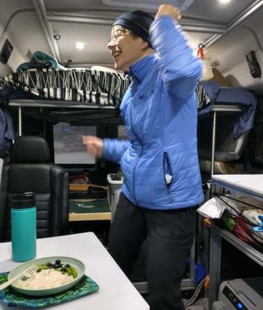 Last year Annette and I spent her birthday in our van driving from a Seattle doctor’s appointment en route to Colorado to visit Heidi’s family. We ended up that day at a BLM campground in NE California a couple hours north of Reno. We were the only campers there that night, and we had a great time. A video of Annette celebrating this special day is below.